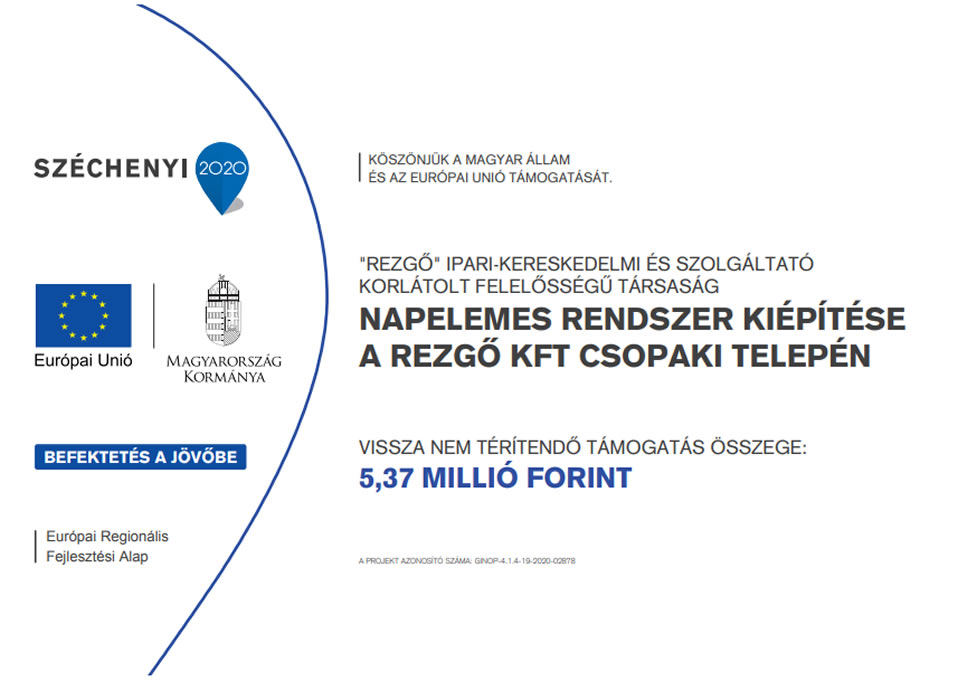 A napelemes rendszer telepítése és beüzemelése a Rezgő Kft. csopaki telephelyén telepített napelemes rendszer engedélyeztetése hálózati szolgáltatónál hálózati engedélyessel módosított hálózathasználati szerződés és hálózatcsatlakozási szerződés megkötése megtörtént, az áramszolgáltató részéről a HMKE mérőcsere/programozás, a telepített HMKE bekapcsolása 2021.09.06. napon megtörtént.